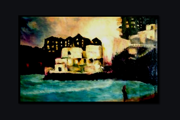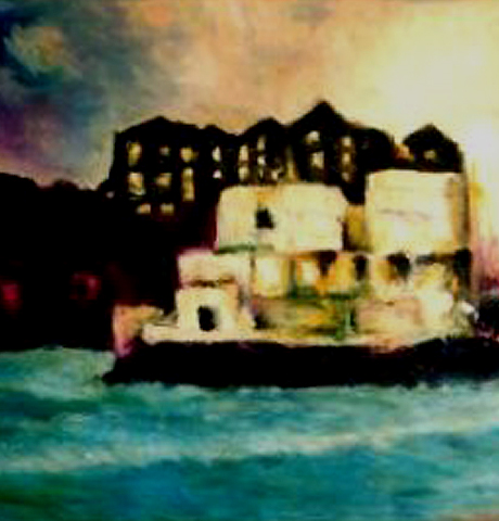 Clouds play like dragons as the red tile roofs crowd toward South head's escarpment. [private collection]