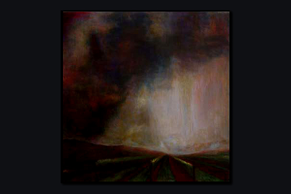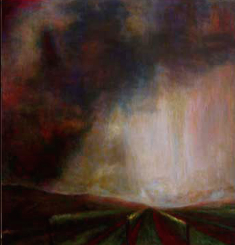 Storm clouds fill the sky in the Hunter vineyards west of newcastle in a classic old master rendering.